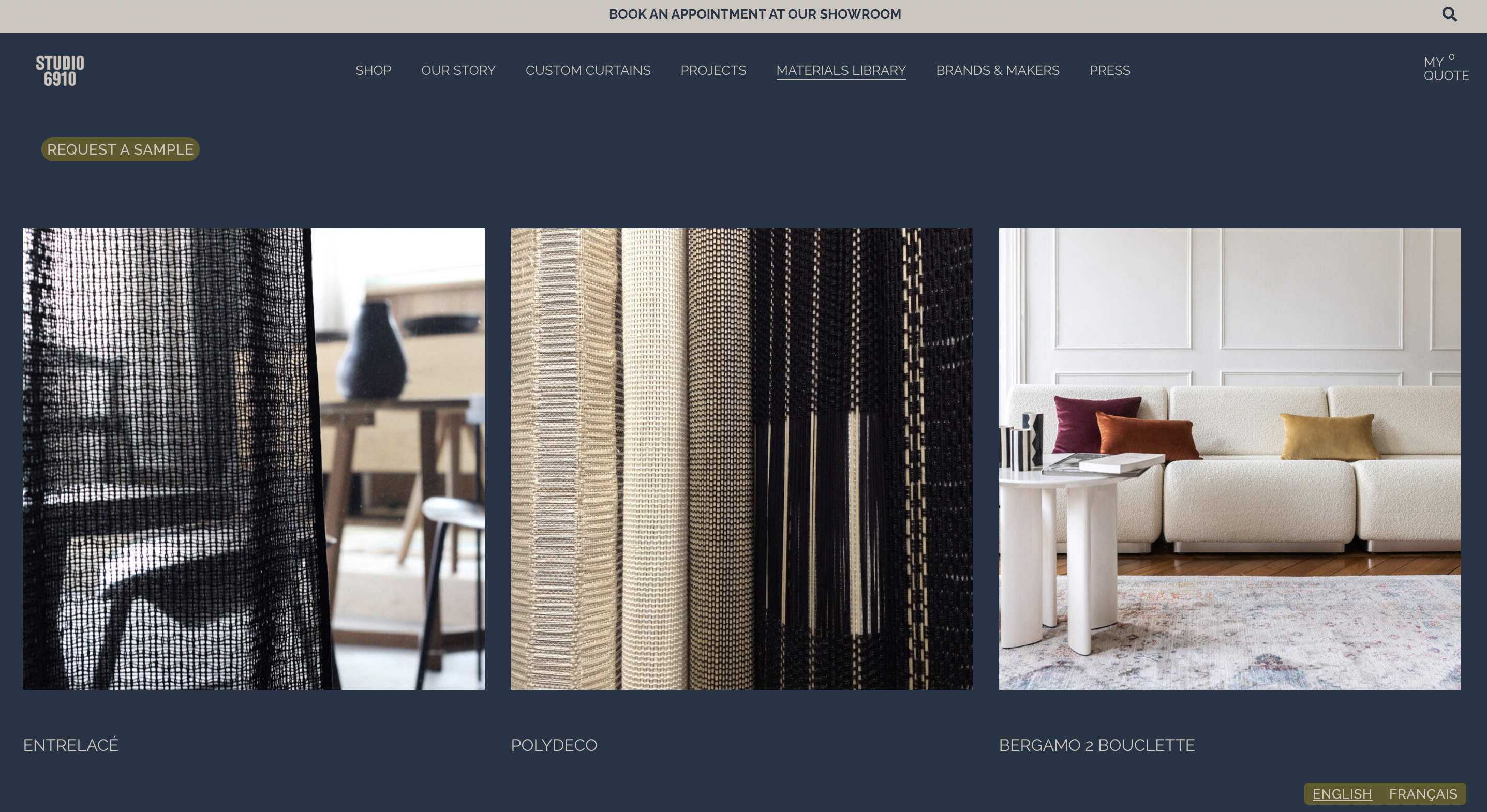 Art & communications director for the luxury European distributor Studio 6910. Oversaw all communications, marketing and PR. This website has a unique material library that showcases textiles, glass, wood and wallpaper. It features over 100 products from furniture to accessories.